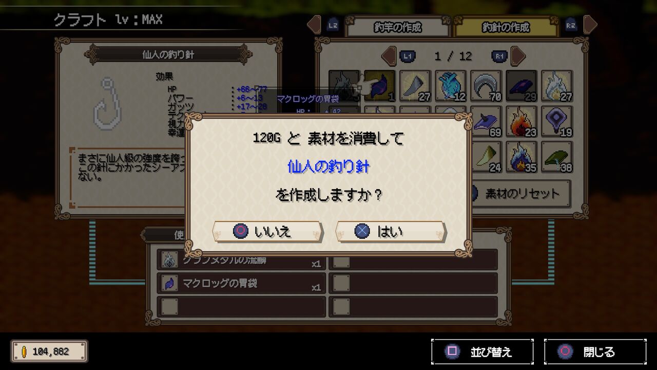 シーアズを釣って素材が集まれば釣り竿や針を自分で作れるように