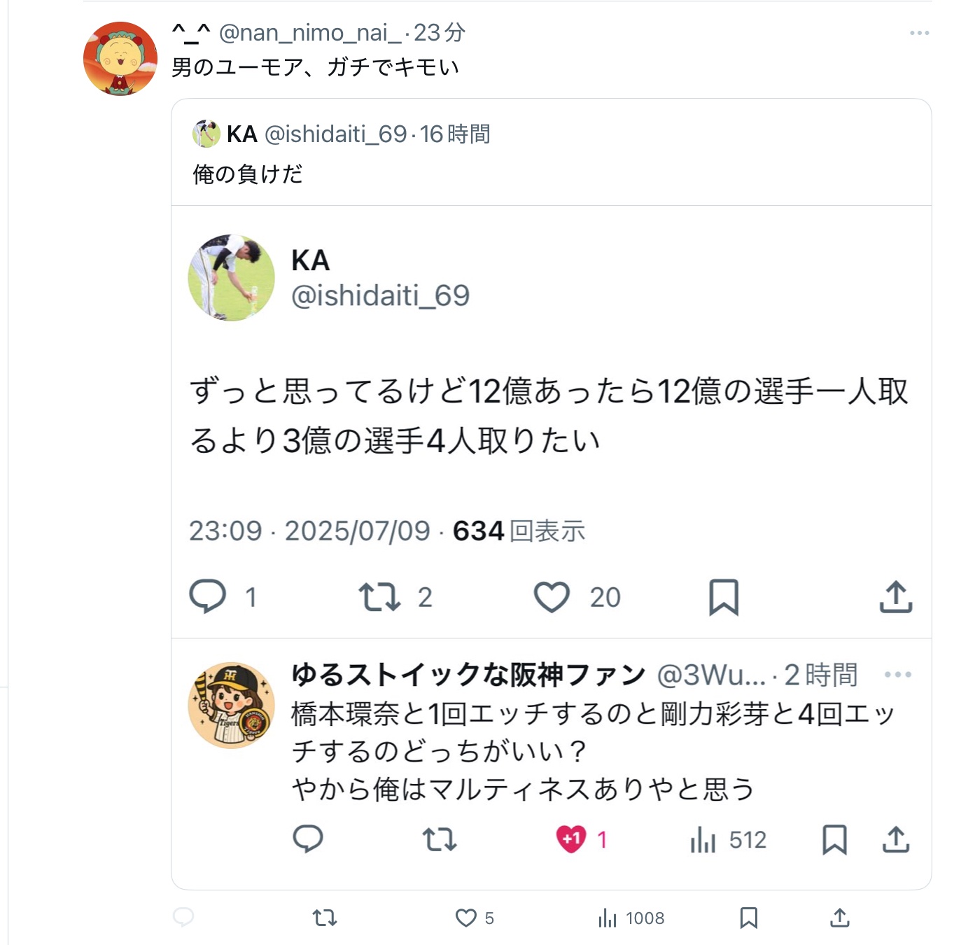 【画像】X女性「男のユーモア、マジで失礼なんだけどこれのどこが面白いの?」 2025年7月13日 最終更新日時 : 2025年7月13日 ココナラwordpress 広告エリア 【絶望画像】港区女子さん、イケメンと結婚するも子供が不細工wwwwwwwww→ 2025年12月14日(日)付け 今週発売予定のPS5・PS4ゲームソフトをピックアップ! 高市政権 新規メガソーラーへの支援廃止 【画像】日本「オリンピックの開会式?まぁこんなんでええやろ‥‥」←結果 【絶望】ロシアさん「次は日本。中国と連携して東京爆撃するわ」⇒ 【動画】今日のブレイキングダウン、ついに放送事故を超えて犯罪一歩手前まで来る 【悲報画像】黒人女性「だから黒人は日本に行きたくねーんだよ!!」→ ホロライブVファン「配信あんまないけど、たまに顔見られるだけで幸せ!」→ 推しにブロックされる😭 【画像】「12歳」と間違われた合法ロリ女(30)wwwww 『ドラゴンクエストVII Reimagined』キャラクタートレーラーが公開中!「ガボ」「アイラ」「メルビン」のトレーラーをピックアップ 【画像】X女性「男のユーモア、マジで失礼なんだけどこれのどこが面白いの?」 1:名無し :2025/07/11(金) 11:07:13.704ID:1ELwwmjQ1 6:名無し :2025/07/11(金) 11:08:17.720ID:Sx7Y9ZJG0 ホンマにつまんなくて草 10:名無し :2025/07/11(金) 11:09:17.812ID:E5Awvfp51 前澤程の金持ち魅了した女やぞとんでもないテクニック持ってるかもしれん 続きを読む 続きを見る(外部サイト) 広告エリア 【絶望画像】港区女子さん、イケメンと結婚するも子供が不細工wwwwwwwww→ 2025年12月14日(日)付け 今週発売予定のPS5・PS4ゲームソフトをピックアップ! 高市政権 新規メガソーラーへの支援廃止 【画像】日本「オリンピックの開会式?まぁこんなんでええやろ‥‥」←結果 【絶望】ロシアさん「次は日本。中国と連携して東京爆撃するわ」⇒ 【動画】今日のブレイキングダウン、ついに放送事故を超えて犯罪一歩手前まで来る 【悲報画像】黒人女性「だから黒人は日本に行きたくねーんだよ!!」→ ホロライブVファン「配信あんまないけど、たまに顔見られるだけで幸せ!」→ 推しにブロックされる😭 関連記事 関連記事はありません。
