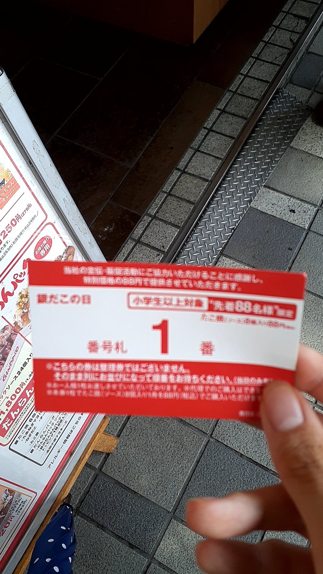銀だこ88円祭りの番号札1番とれました!!! pic.twitter.com/dcTPAsx5JE
