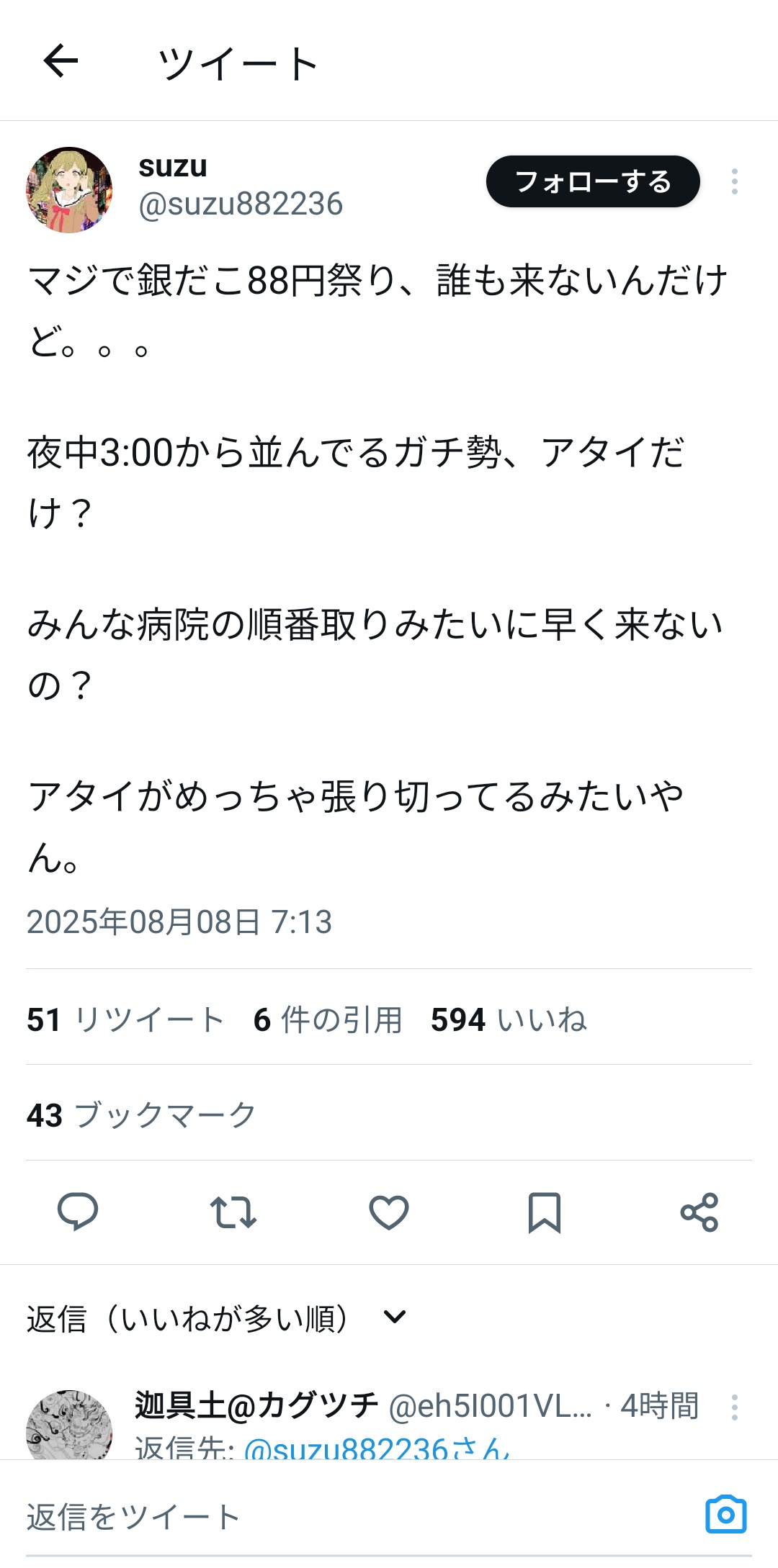 マジで銀だこ88円祭り、誰も来ないんだけど。。。