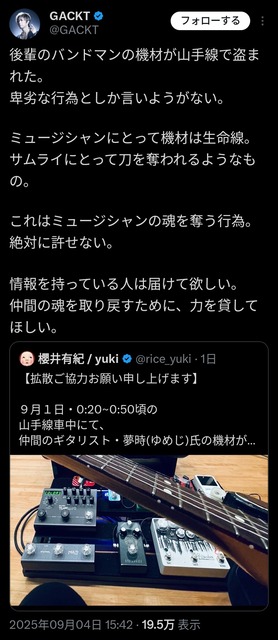 — GACKT (@GACKT) September 4, 2025