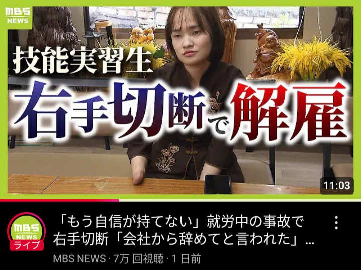 技能実習生のベトナム人女性、勤務先で腕を切断した上に解雇される