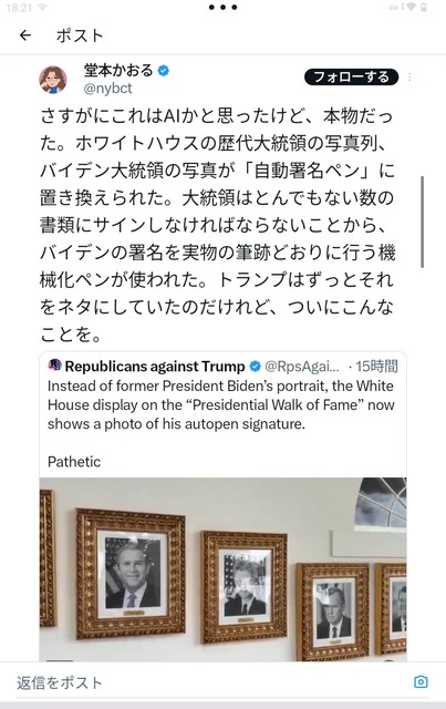 【画像】トランプ大統領、バイデンの肖像画だけ”ペン”にしてしまうwwwwwwwww