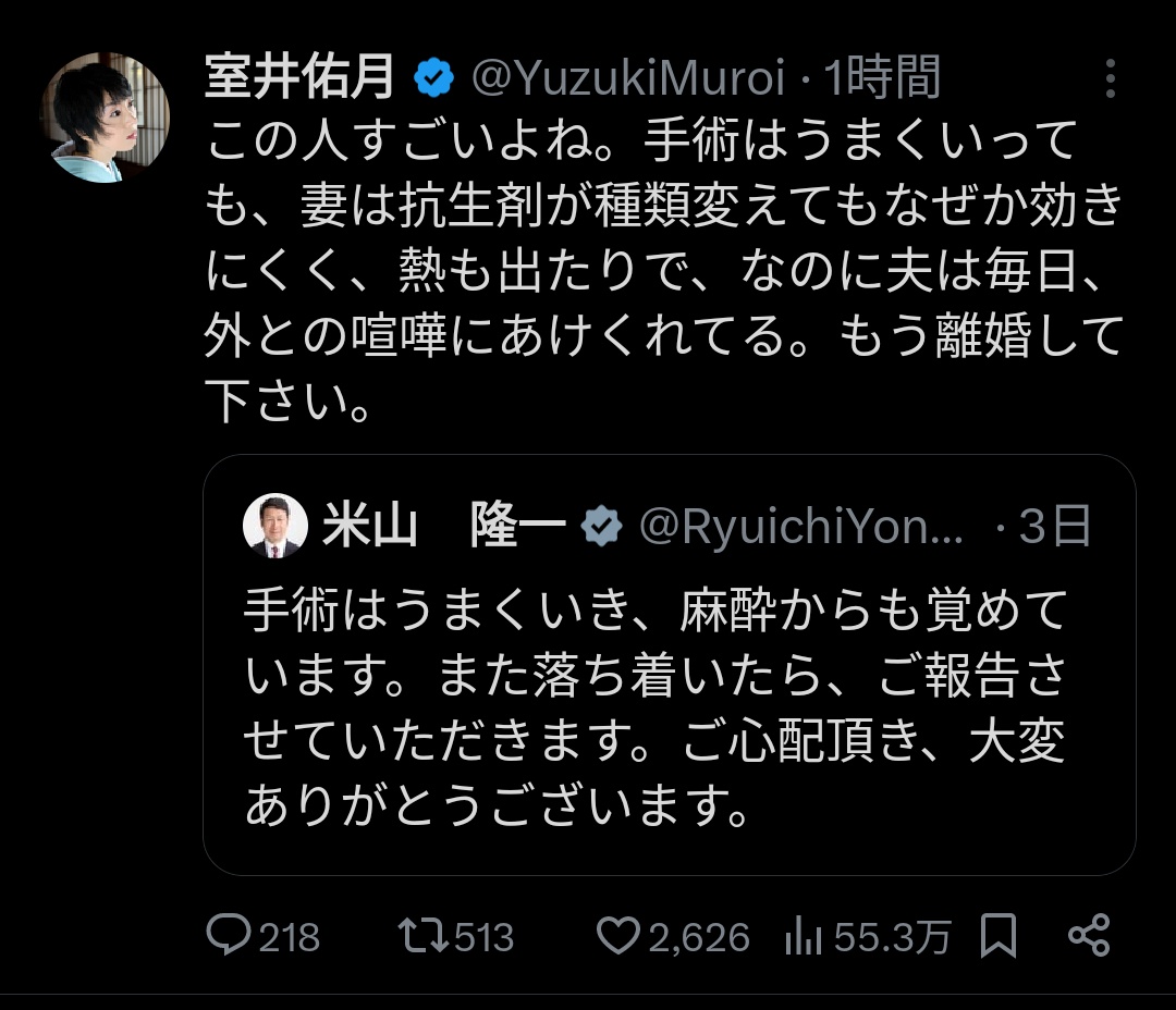 — 室井佑月 (@YuzukiMuroi) December 11, 2025