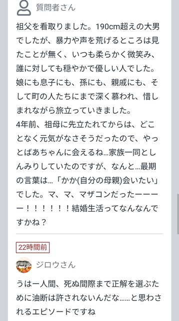 【悲報】今際の際で母親を思い出したおじいちゃん、19歳の孫にマザコン扱いされた挙げ句死亡してしまう