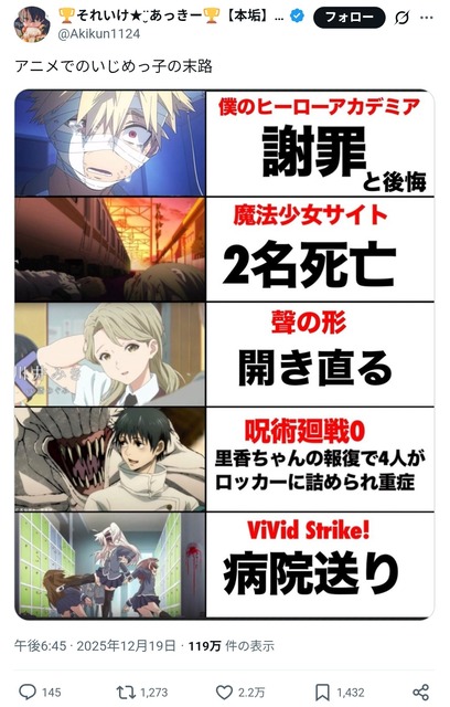 【画像】「アニメでのいじめっ子の末路」、ガチでバズりまくるwwwww