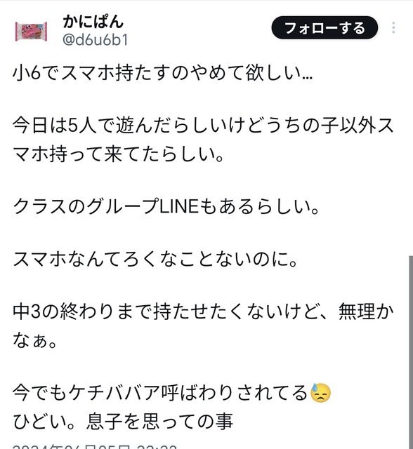 ひどい。息子を思っての事— かにぱん (@d6u6b1) June 5, 2024