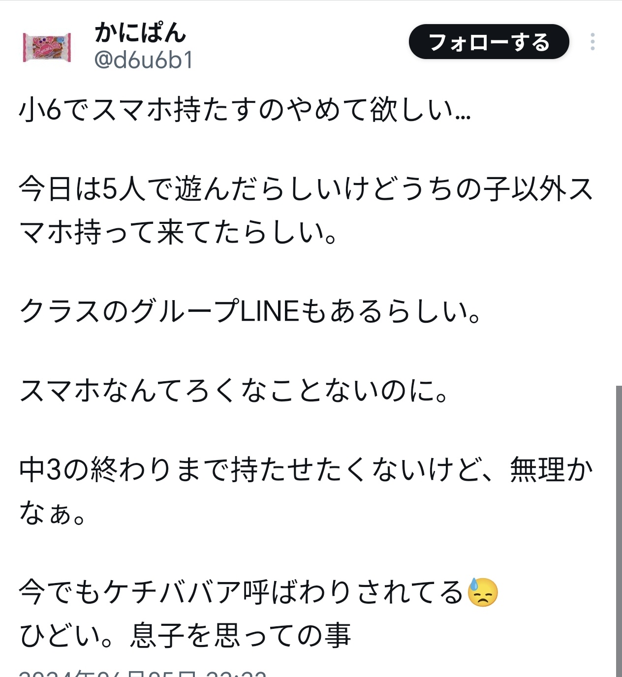 母親「小6にスマホなんて持たすのやめて。ろくなことない。」 →