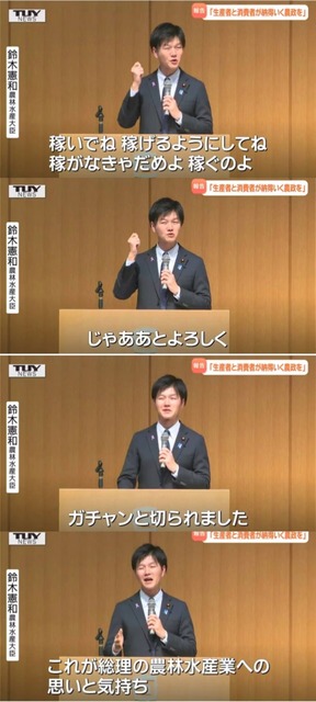 鈴木農水大臣「あのスタッフ元カノなんすよw」芸人「へ、へぇ~素敵なご関係で…」鈴木農水大臣「ウッソでーす!」