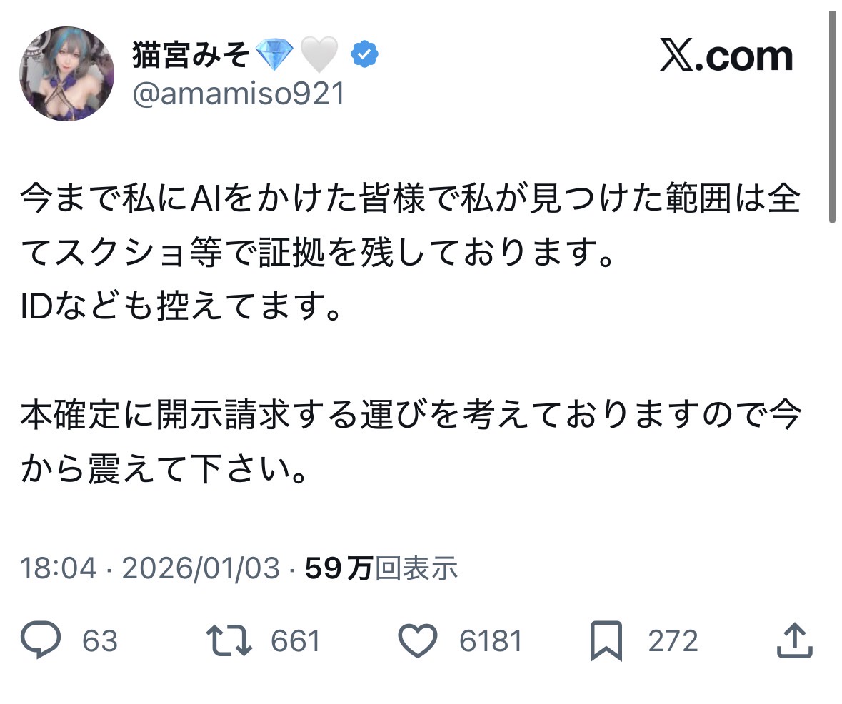 — 猫宮みそ💎🤍 (@amamiso921) January 3, 2026