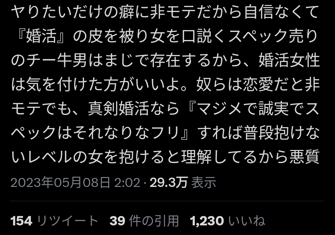 【画像】スペック売りのチー牛、婚活市場で食い荒らしてしまう・・・・・