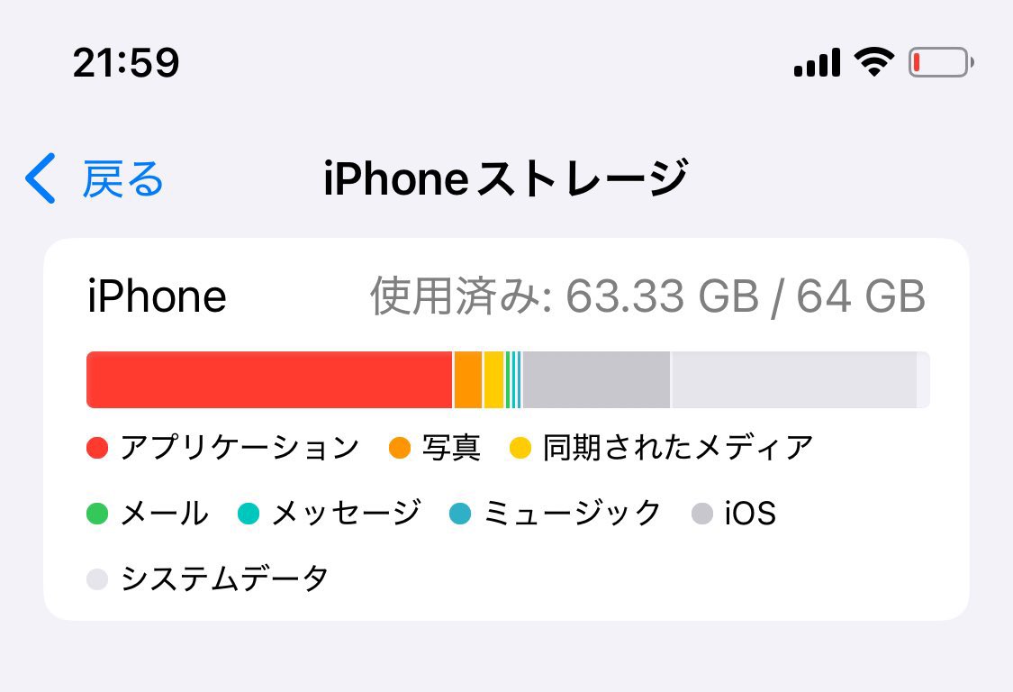 iPhoneのストレージ、システムデータが19GB食ってて99%埋まり…これもう「削除できないゴミ屋敷」だろ!
