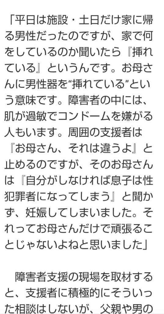 知的障害者「休日は‘‘母親に挿れている‘’」性欲がマジでヤバいと話題に・・・