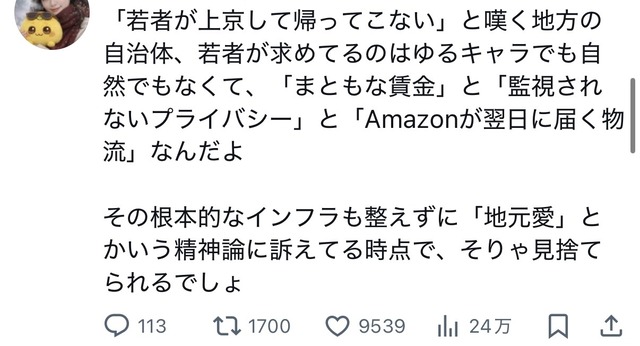 正論だが東京に疲れて帰りたくても帰られなくなるぞ