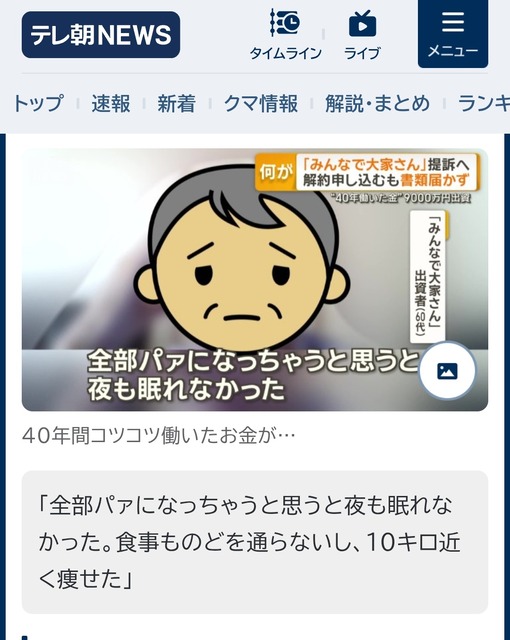 みんなで大家さんに9000万投資した人「40年働いたお金が全部パァになっちゃうかと思うと夜も眠れない…」 2026年1月13日 最終更新日時 : 2026年1月13日 ココナラwordpress 広告エリア 【愕然】売れ残り女さん「熟れた女の魅力はガキなんかにないよ!」→結果www 【動画】ホロライブ博衣こよりさん「人を悪く言うことで満足感を得て自分が優位に立った気になるのは愚かな行為」 熊本のイジメ殺人未遂事件 隠し切れなくなった警察がようやく捜査開始 【画像あり】北九州市の成人式、馬で会場乗り付けた新成人で一時入場規制wwwww 【朗報】ドラクエ7リメイク、RPGの常識を変える画期的な演出がゲームクリエイター達から絶賛される 【画像あり】鳥山明が漫画の歴史を変えた瞬間がこちら⇒! 【悲報】ネプリーグで「爆乳」と答えたおじさん、大変なことになるww 【画像】粗品、ホロライブさくらみこにブチギレ「顔出ししておもろい事言うてみろボケwwwww」→ 【画像】マチアプのプロ「男と付き合う前には実家のカレーに何の肉が入ってるか聞け!」 東大生がモテを確信して成人式に行った結果 みんなで大家さんに9000万投資した人「40年働いたお金が全部パァになっちゃうかと思うと夜も眠れない…」 1:名無し :2026/01/12(月) 03:52:29.452ID:v4z9w.Yau 可哀想 2:名無し :2026/01/12(月) 03:53:54.891ID:OCxXYiYS5 そのまま死にそう 続きを読む 続きを見る(外部サイト) 広告エリア 【愕然】売れ残り女さん「熟れた女の魅力はガキなんかにないよ!」→結果www 【動画】ホロライブ博衣こよりさん「人を悪く言うことで満足感を得て自分が優位に立った気になるのは愚かな行為」 熊本のイジメ殺人未遂事件 隠し切れなくなった警察がようやく捜査開始 【画像あり】北九州市の成人式、馬で会場乗り付けた新成人で一時入場規制wwwww 【朗報】ドラクエ7リメイク、RPGの常識を変える画期的な演出がゲームクリエイター達から絶賛される 【画像あり】鳥山明が漫画の歴史を変えた瞬間がこちら⇒! 【悲報】ネプリーグで「爆乳」と答えたおじさん、大変なことになるww 【画像】粗品、ホロライブさくらみこにブチギレ「顔出ししておもろい事言うてみろボケwwwww」→ 関連記事 【海外記事】『ARC Raiders』開発ドキュメンタリー映像「エピソード1」が公開、当初は「基本プレイ無料」「協力型PvE」だった PvPvEアクションシューター『ARC Raiders』1200万本突破!ゲーム内にて記念の無料特典配布も PSStore「新着ゲーム」1位のPvPvEエクストラクションアドベンチャー『ARC Raiders』400万本突破!初見向け日本語公式記事も公開中。ゲームの中で真の友情が生まれる…かも? PvPvEエクストラクションアドベンチャー『ARC Raiders』リリース、ローンチトレーラーも公開。PSStoreでは「新着ゲーム」6位に登場