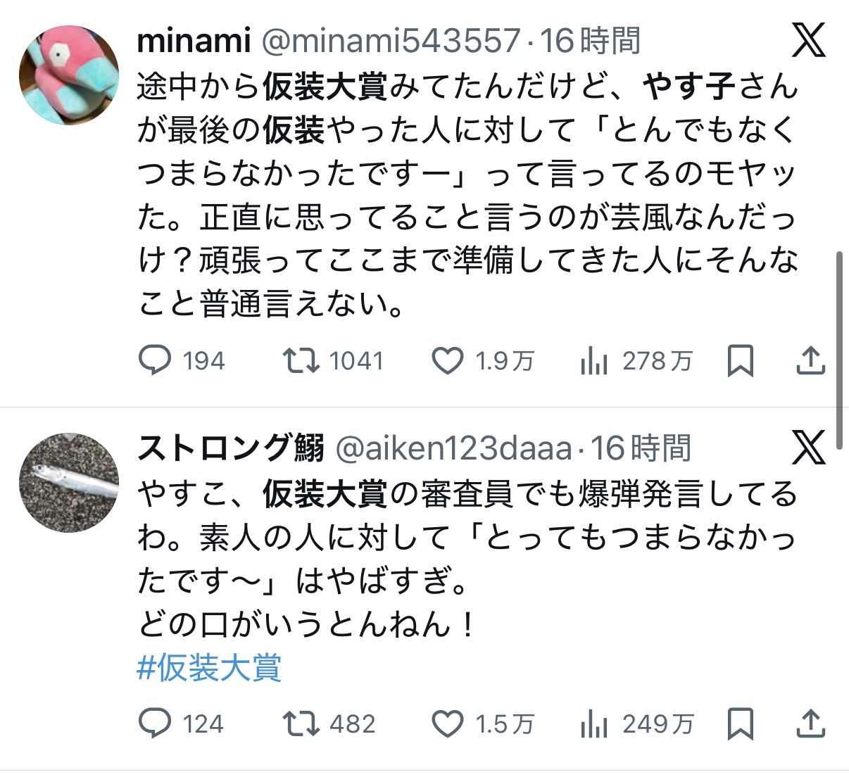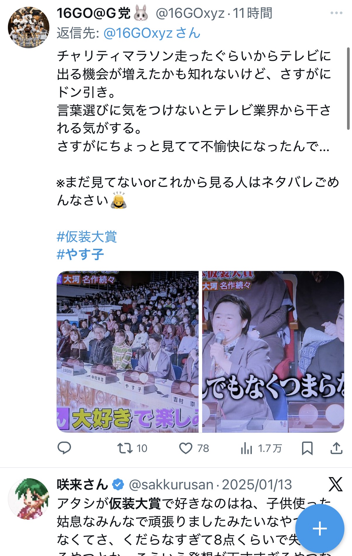 【悲報】やす子、今年5度目の炎上をしてしまうwwwwwww 2026年1月13日 最終更新日時 : 2026年1月13日 ココナラwordpress 広告エリア 【画像】31歳ギャル逮捕!!公表された美人すぎるご尊顔がこちら→wwwwwwwww 【画像】独房に住んでる民、発見されるwwwwwww 【緊急】元プロボクサー・亀田興毅「無法者一家などの言い方は控えてもらいたいです」⇒! 【悲報】粗品、ホロVのさくらみこさんにブチギレwwwwww 【画像】女性の結婚の最適解がコチラwwwww 結婚ガチャに失敗するとこうなる 【悲報】週末のスーパー、妻の後ろをついて歩くだけの『ピクミン旦那』で溢れかえるwwww 【朗報】元セクシー女優さん、キッズ達とミニ四駆で戯れるwww (※画像あり) 【速報】2026年、グラビア界に突如19歳の「エロ乳」が降臨wwwww 【衝撃】女性、『VIO脱毛』してこうなる →! 【悲報】やす子、今年5度目の炎上をしてしまうwwwwwww 1:名無し: 2026/01/13(火) 12:47:14.875 ID:I7pHlu7xl 3:名無し: 2026/01/13(火) 12:47:48.916 ID:BfsnzfO9y 燃えすぎで草 7:名無し: 2026/01/13(火) 12:49:13.009 ID:NoNxun.hF 何言っても叩かれるフェーズ来たな 続きを読む 続きを見る(外部サイト) 広告エリア 【画像】31歳ギャル逮捕!!公表された美人すぎるご尊顔がこちら→wwwwwwwww 【画像】独房に住んでる民、発見されるwwwwwww 【緊急】元プロボクサー・亀田興毅「無法者一家などの言い方は控えてもらいたいです」⇒! 【悲報】粗品、ホロVのさくらみこさんにブチギレwwwwww 【画像】女性の結婚の最適解がコチラwwwww 結婚ガチャに失敗するとこうなる 【悲報】週末のスーパー、妻の後ろをついて歩くだけの『ピクミン旦那』で溢れかえるwwww 【朗報】元セクシー女優さん、キッズ達とミニ四駆で戯れるwww (※画像あり) 関連記事 北山宏光さん主演の長編実写群像劇サスペンス『AKIBA LOST』9/17に発売決定、パッケージ版の予約受付も開始!「ゲームのクオリティを最大化させるための」ドラマは1/13深夜放送 9/17リリース予定、北山宏光さん主演の長編実写群像劇サスペンス『AKIBA LOST』ドラマが本日1/13深夜放送開始 オオカミとなり記憶を取り戻す探索アドベンチャー『Lost Ember: Rekindled Edition』、新DLC『Lost Ember: Legendary Souls』配信中 『ARK: Survival Ascended』に新マップ&新生物追加の大型追加コンテンツ「Lost Colony」が配信開始!(本編はPSStoreでセール中)