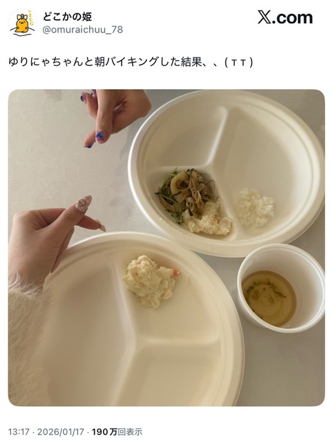 【画像】カリカリ女と朝食バイキングをした結果wwww 2026年1月18日 最終更新日時 : 2026年1月18日 ココナラwordpress 広告エリア 【画像】全身タトゥードエロギャル「反社に間違われるけどあたし怖くない。普通の女の子扱いしてほしいの…」 【悲報】北川景子さん、泣く・・・・・! 【画像】寿司職人になりたいなぁ……Youtube見て握り方覚えるか……→結果 中道改革連合への比例投票9%という衝撃のデータ 維新や国民以下となり始まる前からオワコンに 【悲報】昔ビールCM「ゴッッ…ゴッッ…ゴッッ…あ゛ぁ゛~っ!!」ジョッキダァァンッ!!太陽ピカーッ!!汗ダラァーッ!!蝉ミンミーン!!! →w 【悲報】坂口杏里さんの最新の姿、ガチで壊れてしまうwww 女さん(33)「ダウン症検査を受けろと言われたけど無視して双子産んだ」⇒結果! 【画像】カリカリ女と朝食バイキングをした結果wwww 【朗報】中学生の頃、こういう女性教師のことを好きになってたよな (※画像あり) 【悲報】個室サウナを数店舗経営しているワイ 詰む 【画像】カリカリ女と朝食バイキングをした結果wwww 1:名無し :2026/01/18(日) 11:39:03.258ID:o1sxImhWW 2:名無し :2026/01/18(日) 11:39:12.558ID:o1sxImhWW おお 3:名無し :2026/01/18(日) 11:39:19.673ID:zMLnTqvXq 言うほど飯か? 100:名無し :2026/01/18(日) 11:50:08.882ID:nfALUKX5Q >>3 (残)飯 続きを読む 続きを見る(外部サイト) 広告エリア 【画像】全身タトゥードエロギャル「反社に間違われるけどあたし怖くない。普通の女の子扱いしてほしいの…」 【悲報】北川景子さん、泣く・・・・・! 【画像】寿司職人になりたいなぁ……Youtube見て握り方覚えるか……→結果 中道改革連合への比例投票9%という衝撃のデータ 維新や国民以下となり始まる前からオワコンに 【悲報】昔ビールCM「ゴッッ…ゴッッ…ゴッッ…あ゛ぁ゛~っ!!」ジョッキダァァンッ!!太陽ピカーッ!!汗ダラァーッ!!蝉ミンミーン!!! →w 【悲報】坂口杏里さんの最新の姿、ガチで壊れてしまうwww 女さん(33)「ダウン症検査を受けろと言われたけど無視して双子産んだ」⇒結果! 【画像】カリカリ女と朝食バイキングをした結果wwww 関連記事 【画像】スーパーでとんでもない寿司を発見したワイ、急遽寿司パーティー開催へwwwwww 【朗報】中学生の頃、こういう女性教師のことを好きになってたよな (※画像あり) 『モンスターハンターワイルズ』「狩王決定戦 2026」のクエスト情報が公開、参加応募受付もスタート。会場に等身大「ヌ・エグドラ」バルーン登場も決定! 【動画】100:0 の事故がこちらwwwwwww