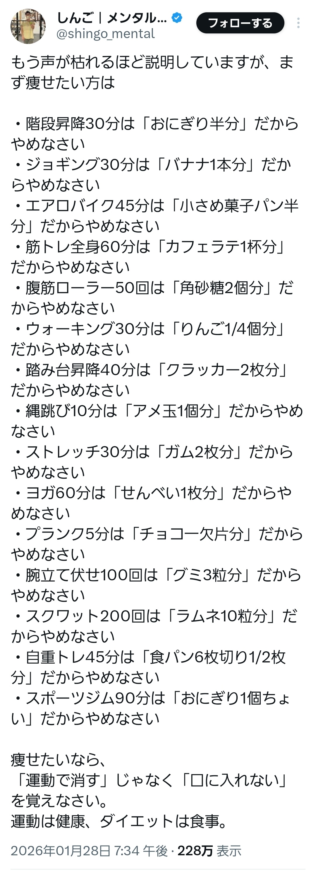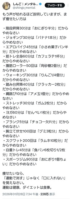 痩せるための食生活の習慣付けは運動と関連させて会得したほうが良いと思うんだけどな