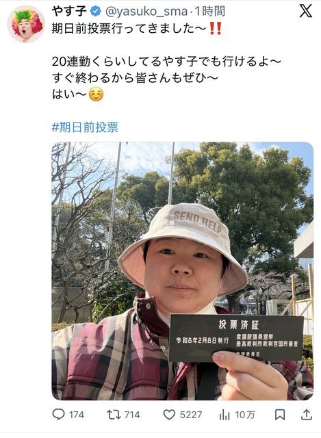 【悲報】期日前投票に行ったやす子、お前らを余計な一言で煽るw