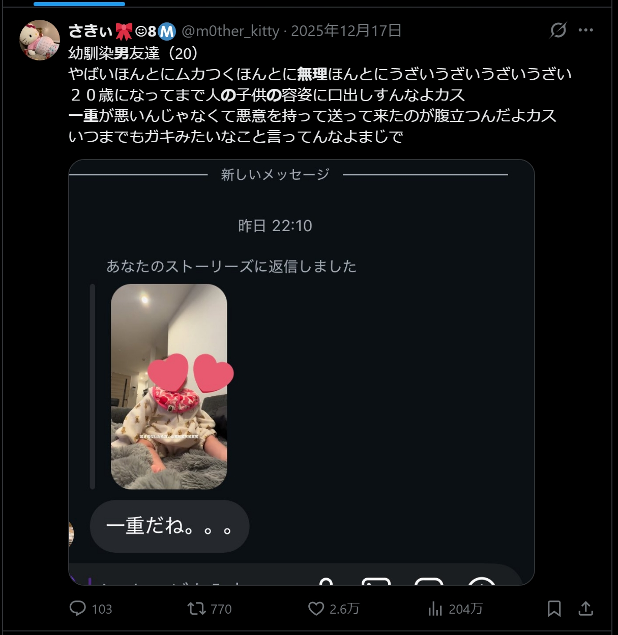 赤ちゃんの写真送っただけでこの言われよう