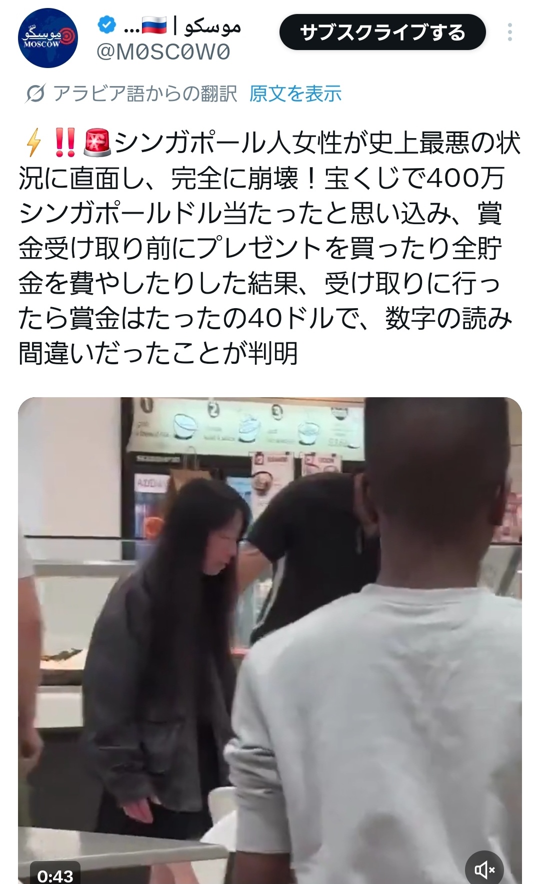 【画像】シンガポール女さん、宝くじで5億円が当たったと勘違いし全財産を使ってしまい発狂してしまう・・・・