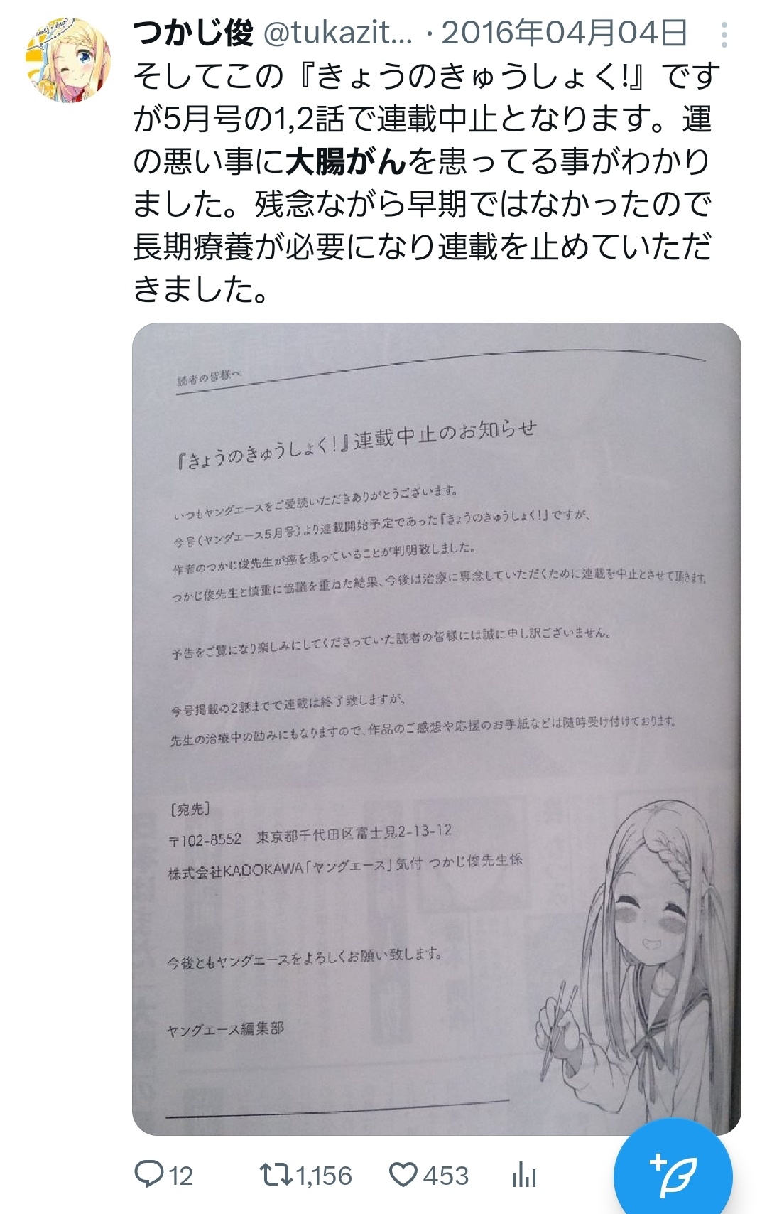 【悲報】マンガ家「運動したらお腹に違和感」→2年後に大腸がんで亡くなってしまう