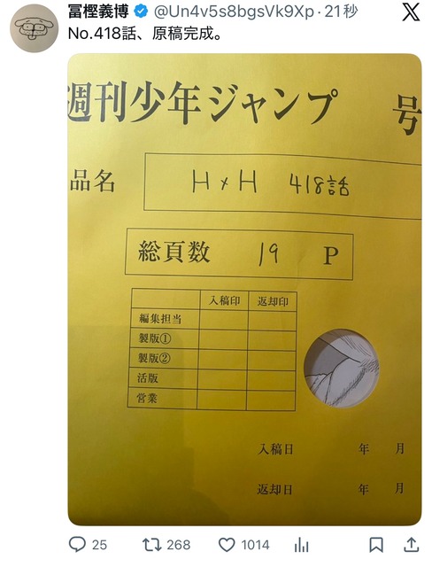 【朗報】冨樫、ついにHUNTER×HUNTERの原稿を完成させる