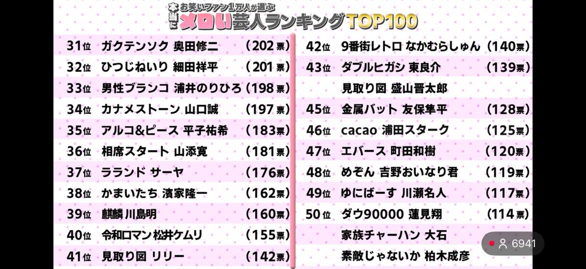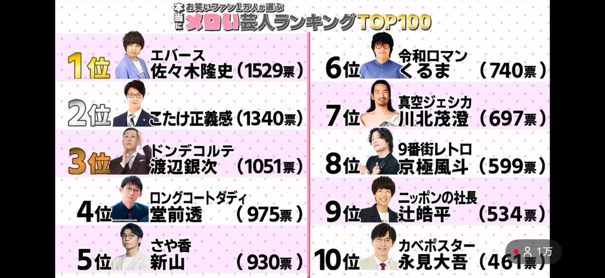 【悲報】お笑いファン1万人が選ぶ「本当にメロい」芸人ランキングがコチラwwww
