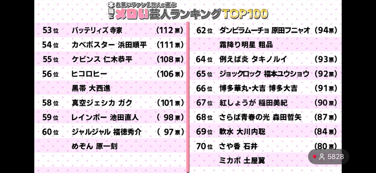 ほかのコンビは大体デブキャラの相方が上位なのにレインボーだけデブが上