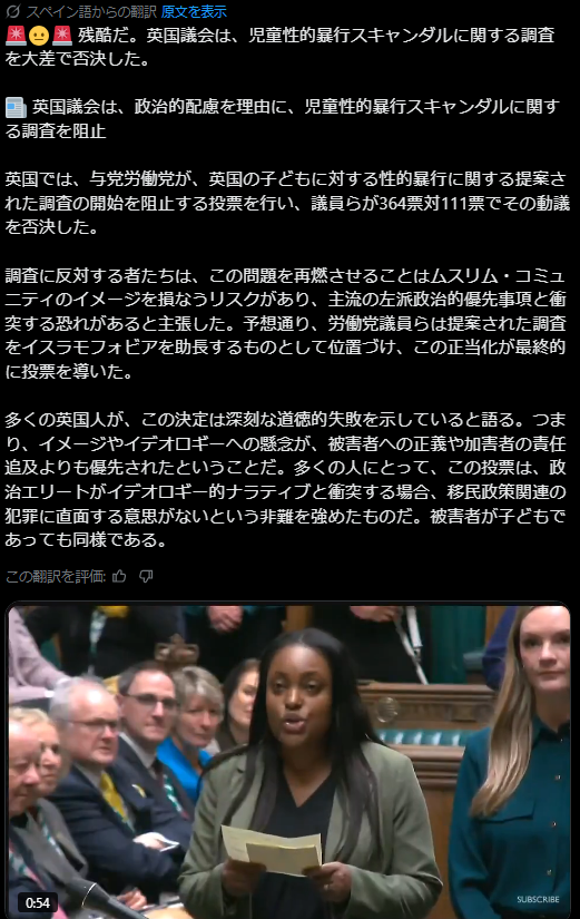 🚨😐🚨 BRUTAL. El parlamento Británico vota en contra MASIVAMENTE de una investigación sobre escándalos de violación infantil.