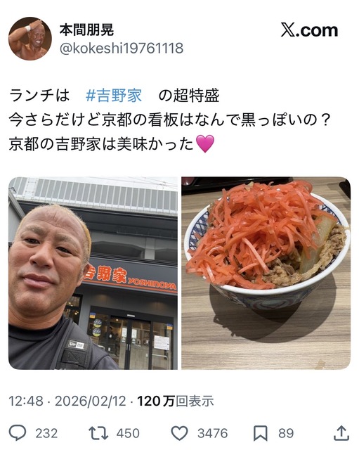 【画像】プロレスラーさん、牛丼に紅しょうがを盛りすぎただけで炎上してしまう