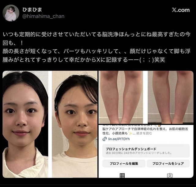 【画像】JK「脳洗浄ほんっとにね最高すぎる!顔が短くなって、足がスッキリするの~w」