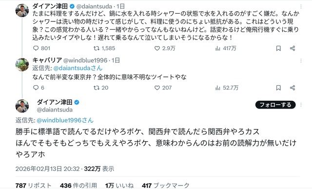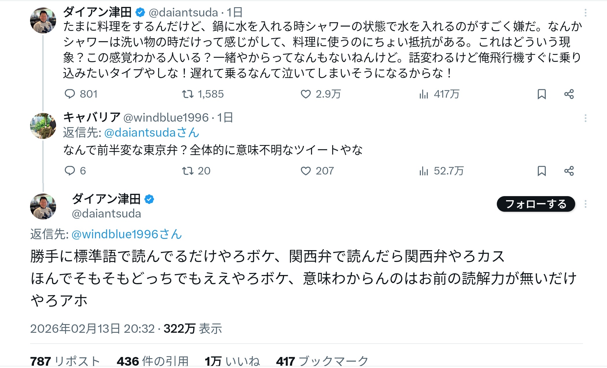 【速報】人気芸人・ダイアン津田、SNSで一線を越える。一般ユーザーに放った「禁断の言葉」がこちら・・・・