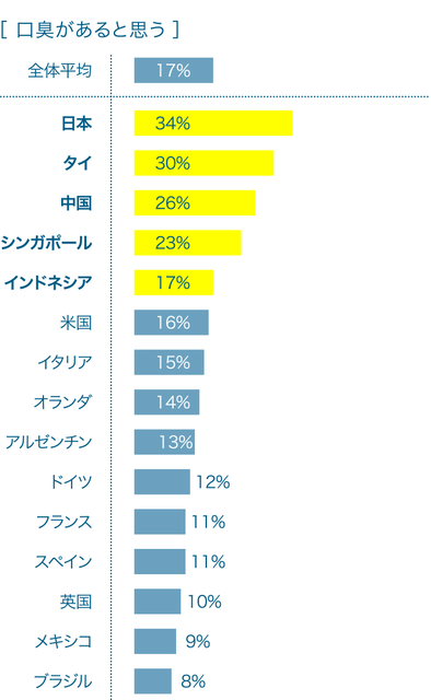 【悲報】日本人の口、臭かった。世界ランキングで無事死亡www