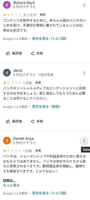【悲報】日本の子ザル「パンチくん」に感動した外国人、なぜか動物園を低評価で埋め尽くす謎ムーブをしてしまう・・・