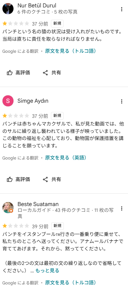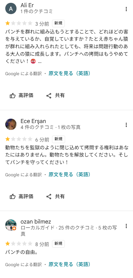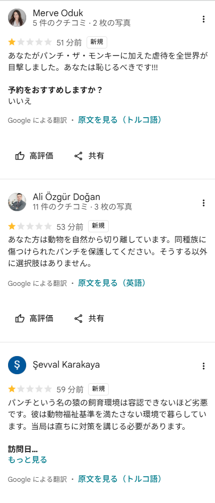 【悲報】日本の子ザル「パンチくん」に感動した外国人、なぜか動物園を低評価で埋め尽くす謎ムーブをしてしまう・・・