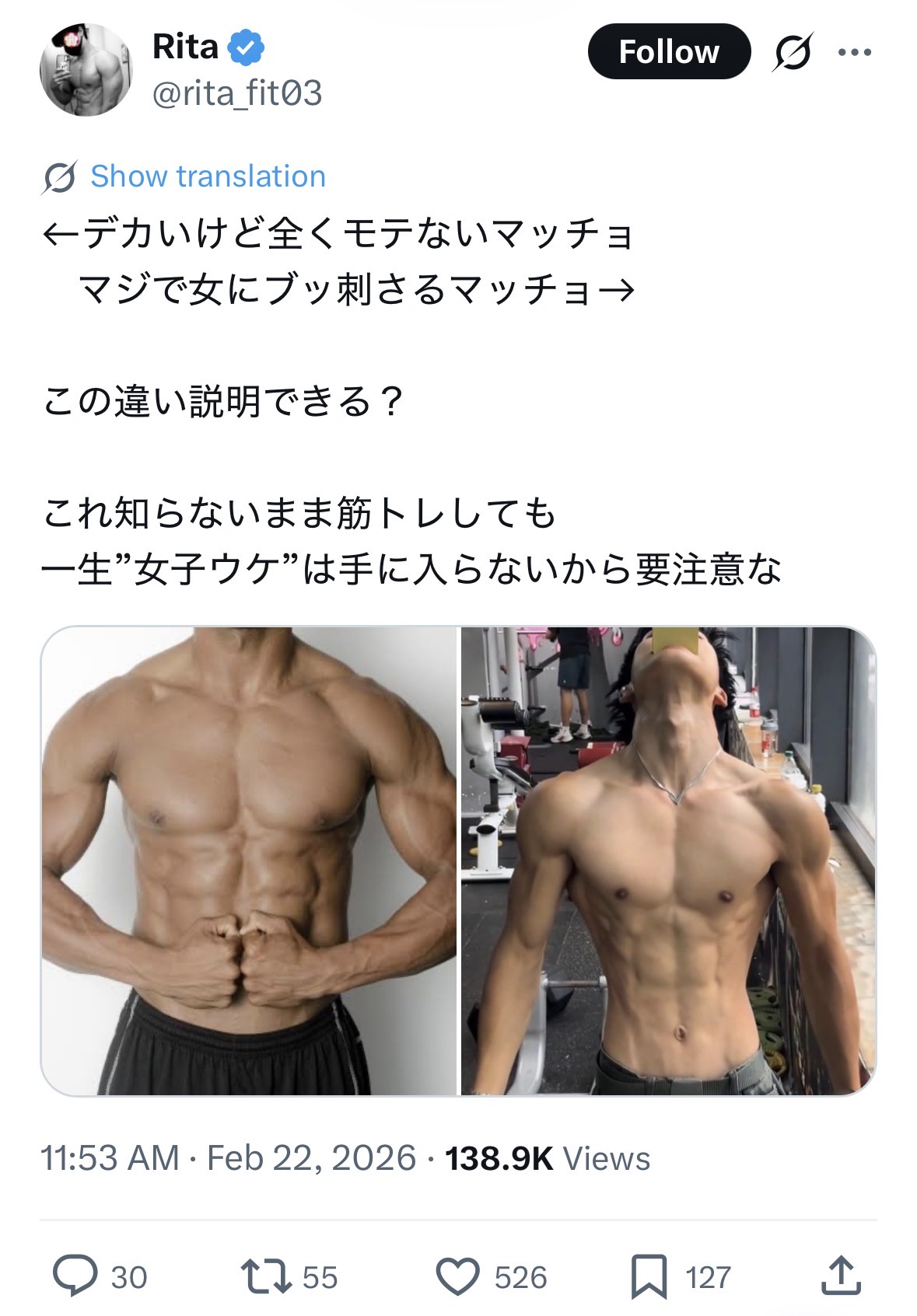右はマッチョの枠に入っとらん
