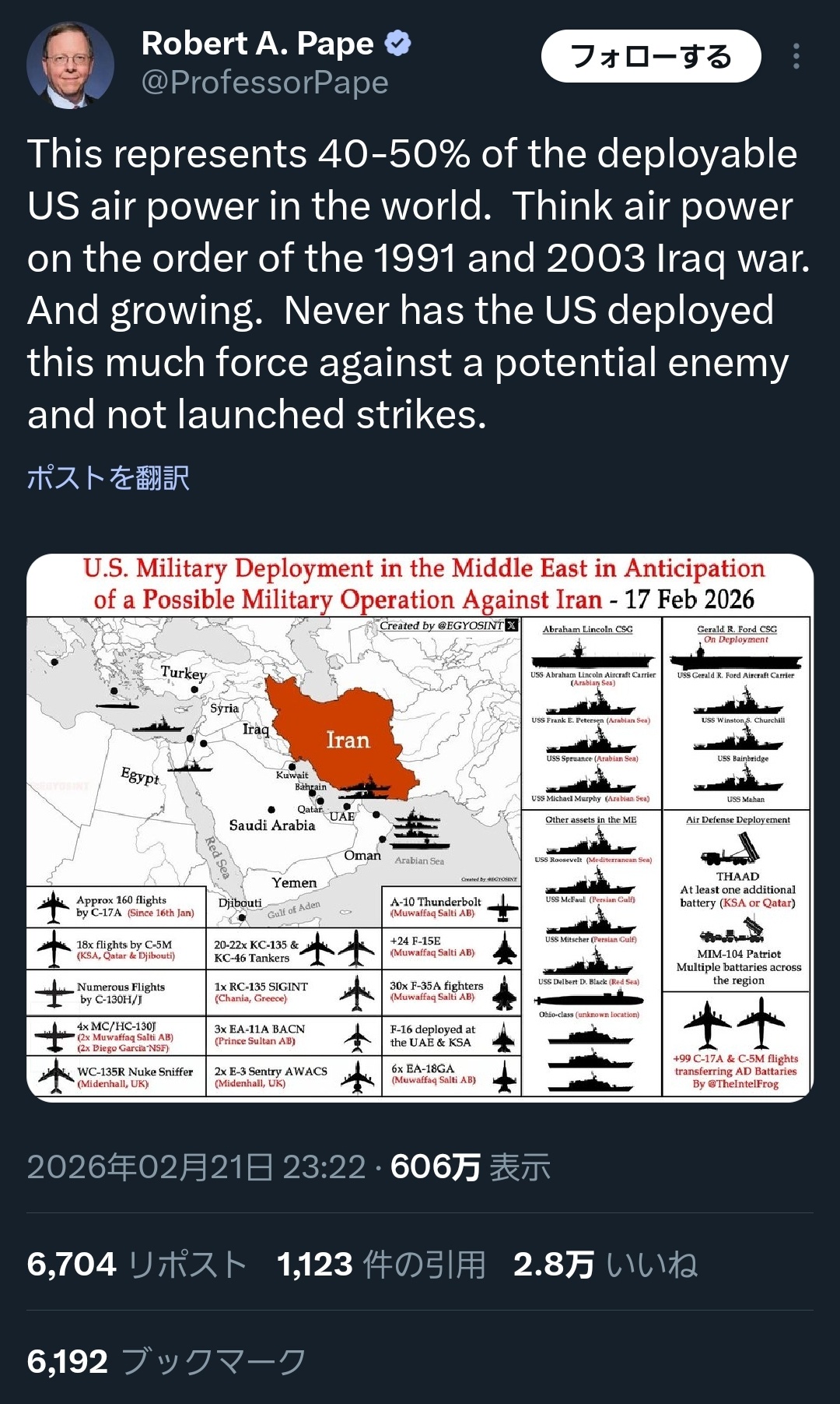 アメリカ軍、最大勢力を投入してイラン包囲網を完成させるwww
