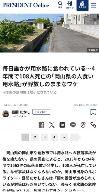 【画像】岡山の用水路、4年で108人を飲み込む「魔境」だった…父姉夫を一度に失った遺族の訴えが切実すぎる・・・