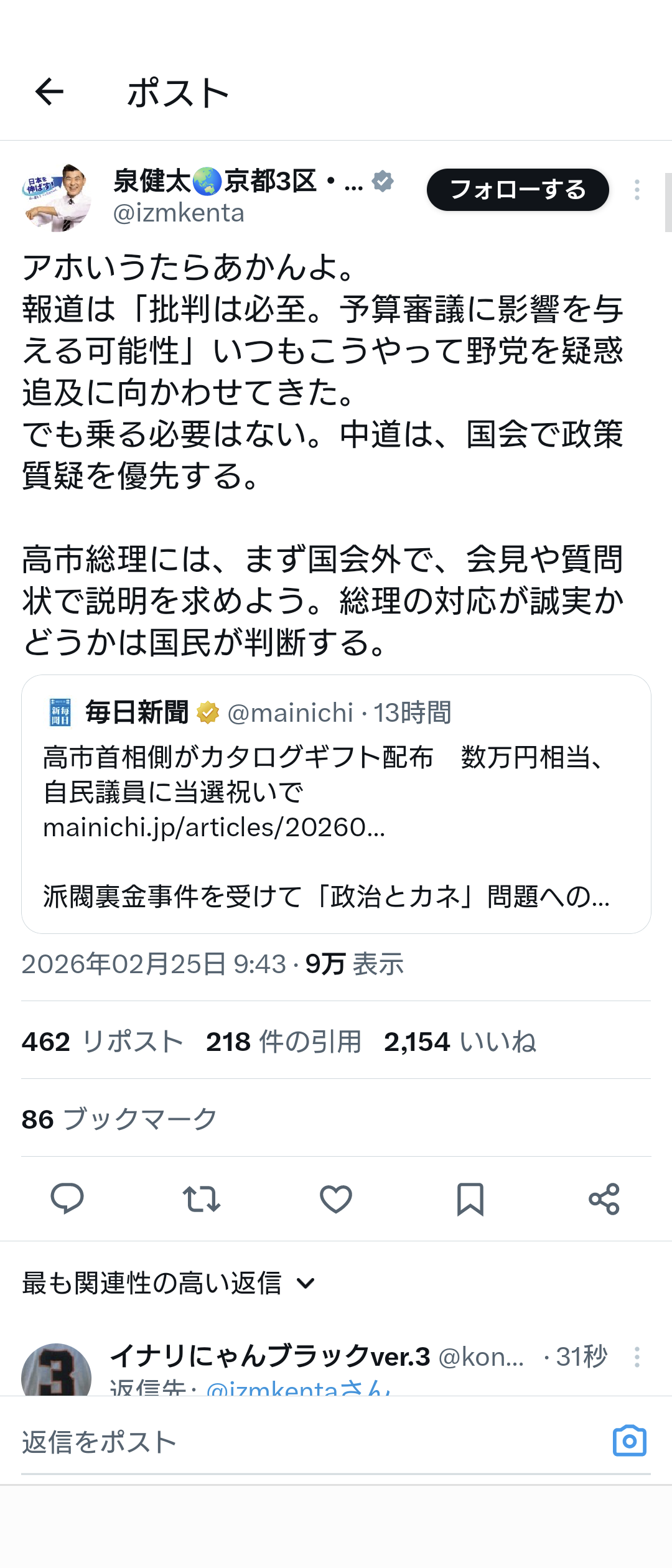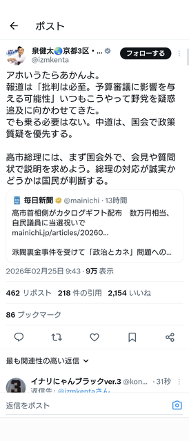 チュドカク泉健太「カタログ追及とかしてる場合じゃない、政策議論優先だろうが!」