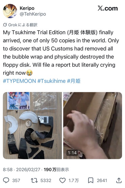 【画像】アメリカ人オタク「世界に50枚しかない月姫(クソキモ同人エロゲ)体験版を買ったぞ!」アメリカ税関「うわっ!キモッ!!」