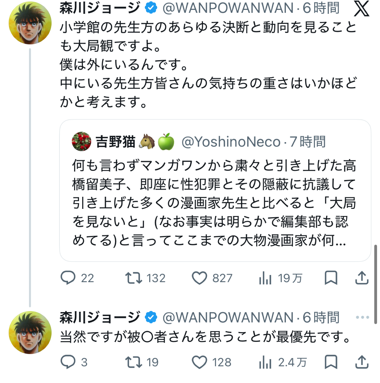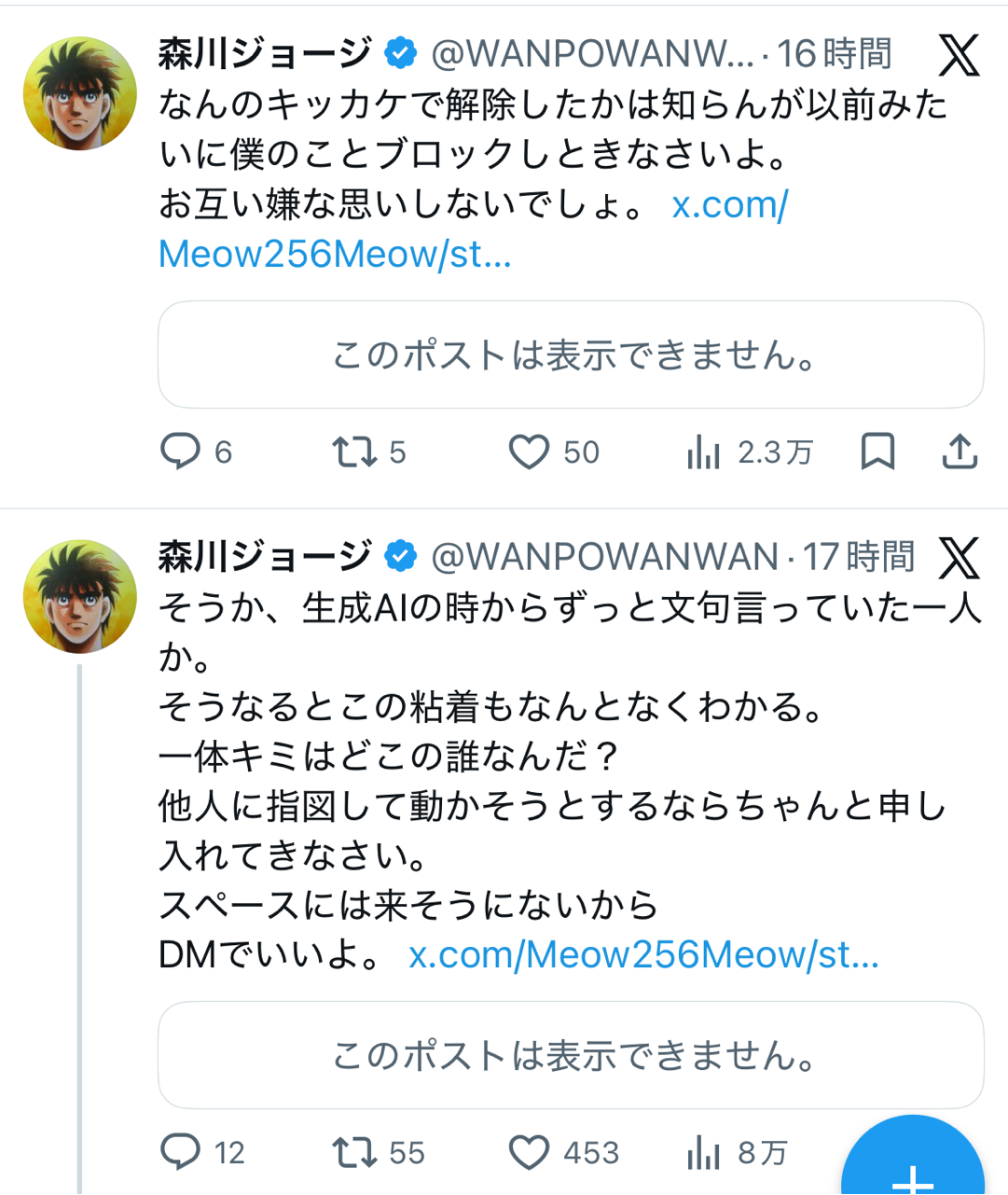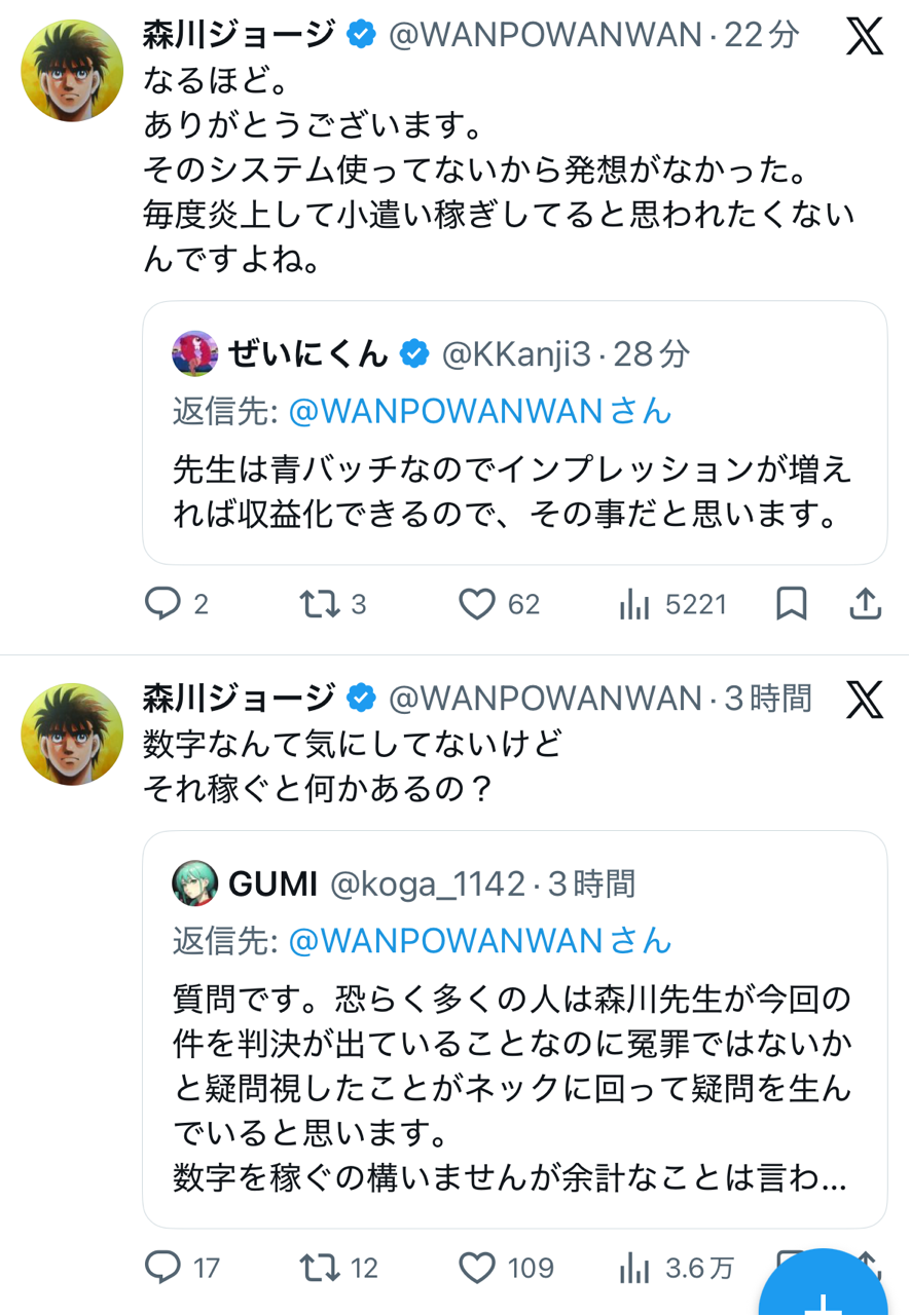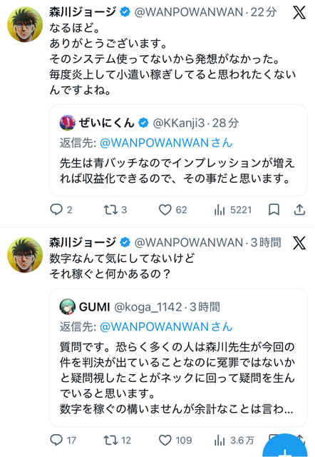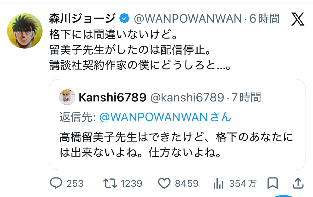 【悲報】はじめの一歩の作者さん、マンガワン騒動でもX民とのレスバが止まらないwwwww
