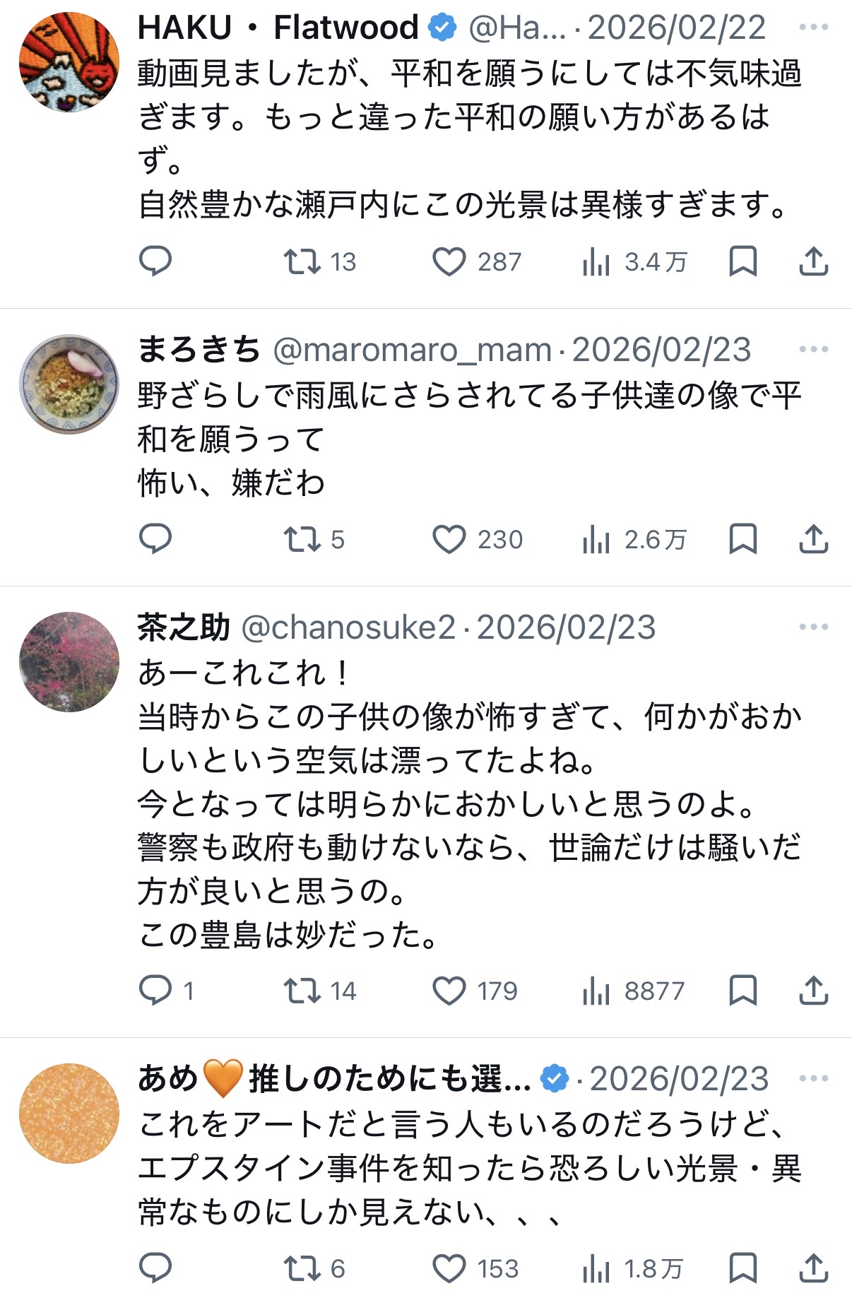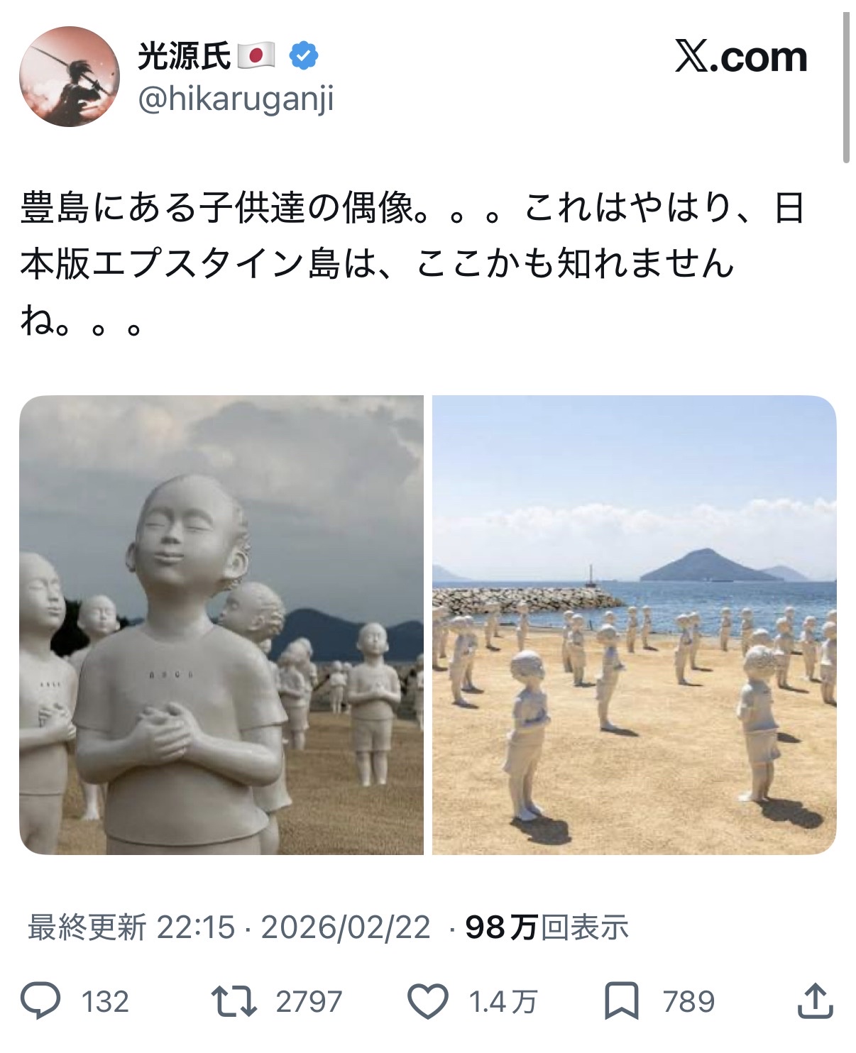 豊島にある子供達の偶像。。。これはやはり、日本版エプスタイン島は、ここかも知れませんね。。。 pic.twitter.com/v6VosDhVqc