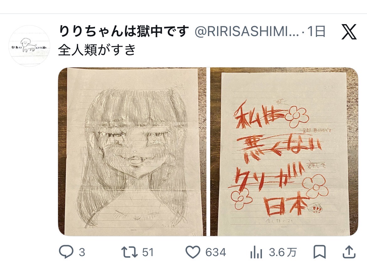 — りりちゃんは獄中です (@RIRISASHIMIEBI) March 11, 2026