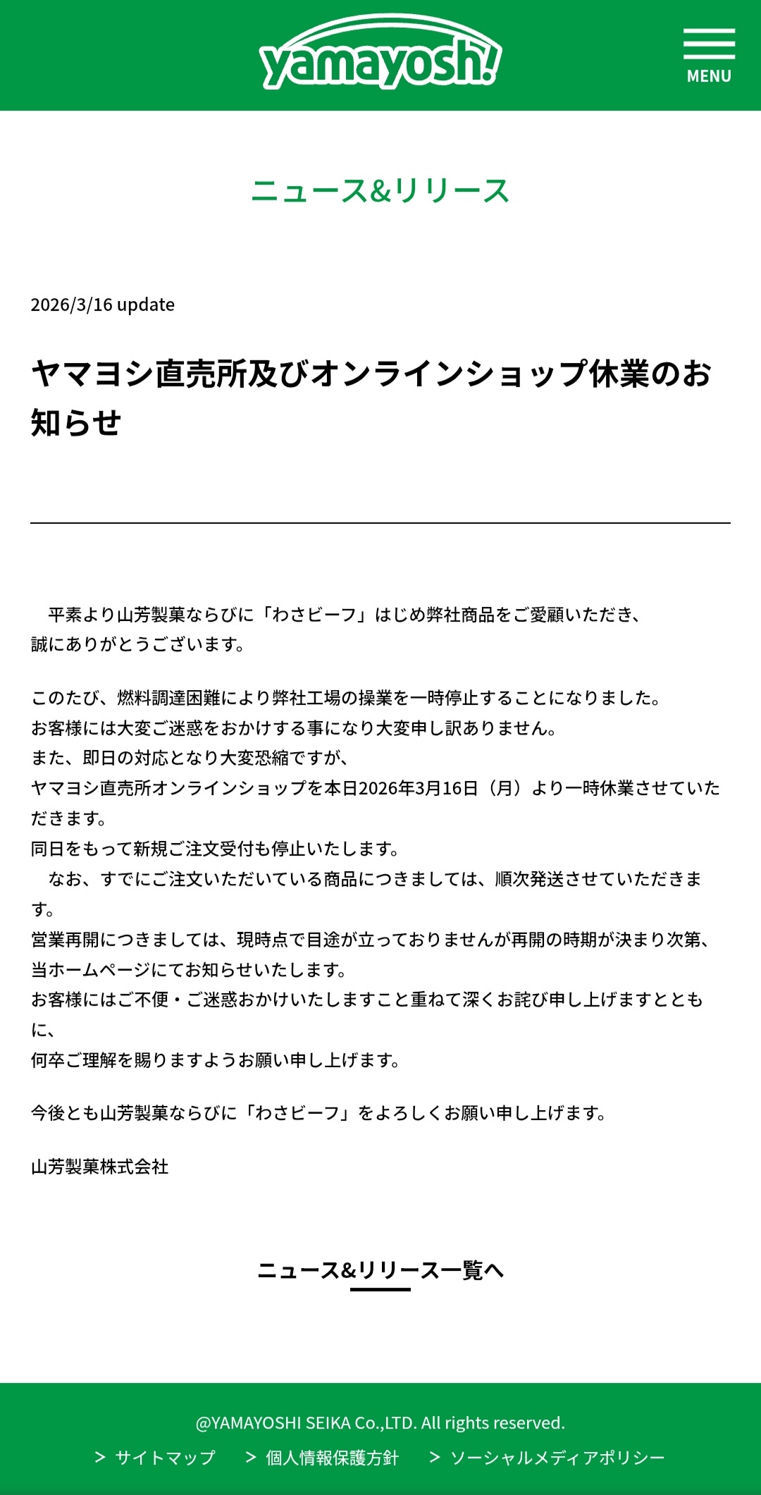 【悲報】『わさビーフ』、重油が調達できず工場を停止…