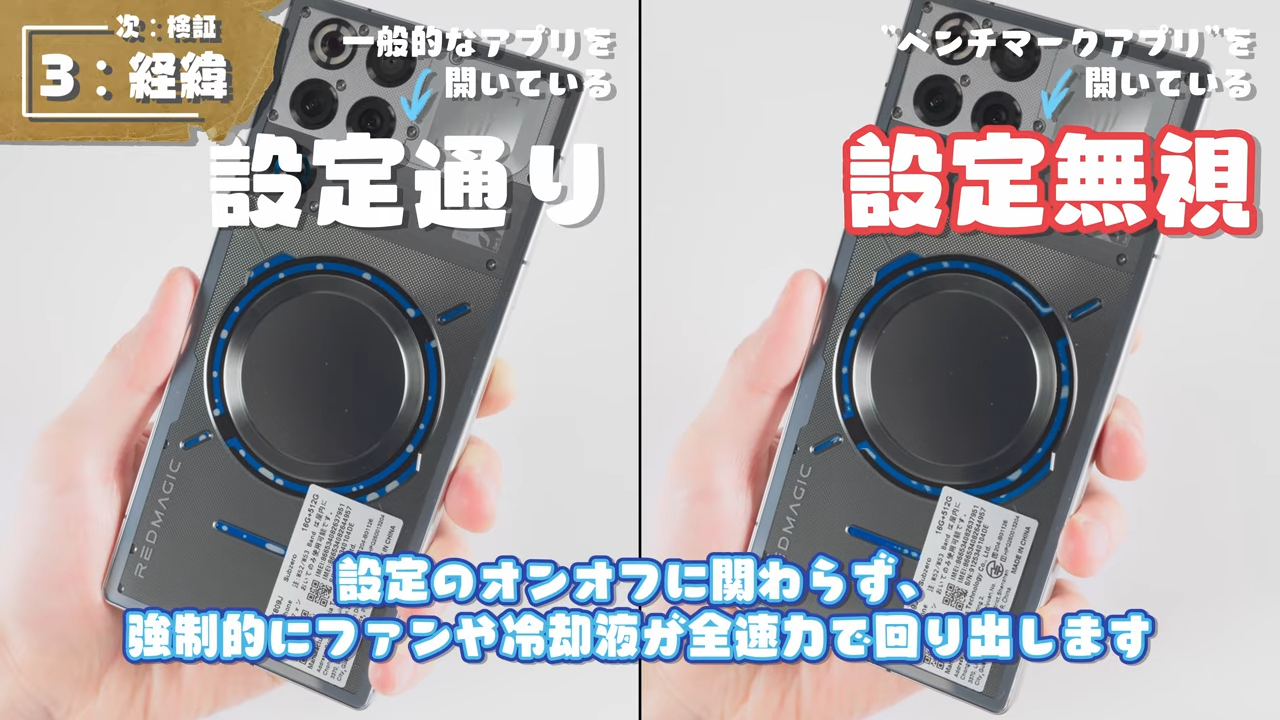 【悲報】中華製ゲーミングスマホ、お飾りの水冷機構を付けたせいでベンチスコア水増し不正がバレるwwwww