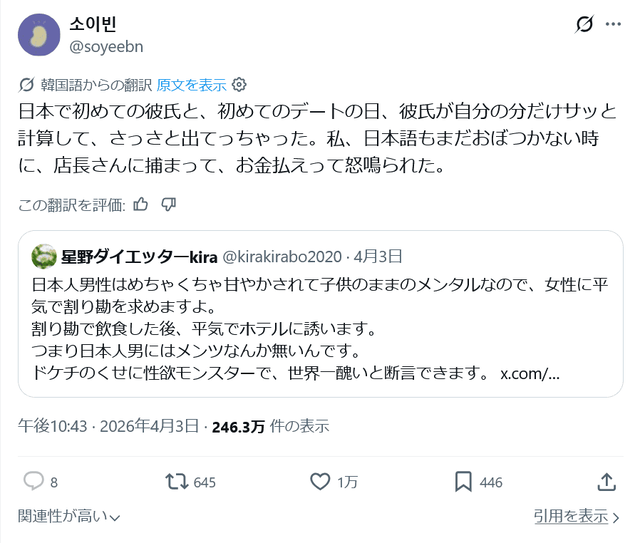 ドケチのくせに性欲モンスターで、世界一醜いと断言できます。 https://t.co/Ho81yyZPEu— 星野ダイエッターkira (@kirakirabo2020) April 2, 2026