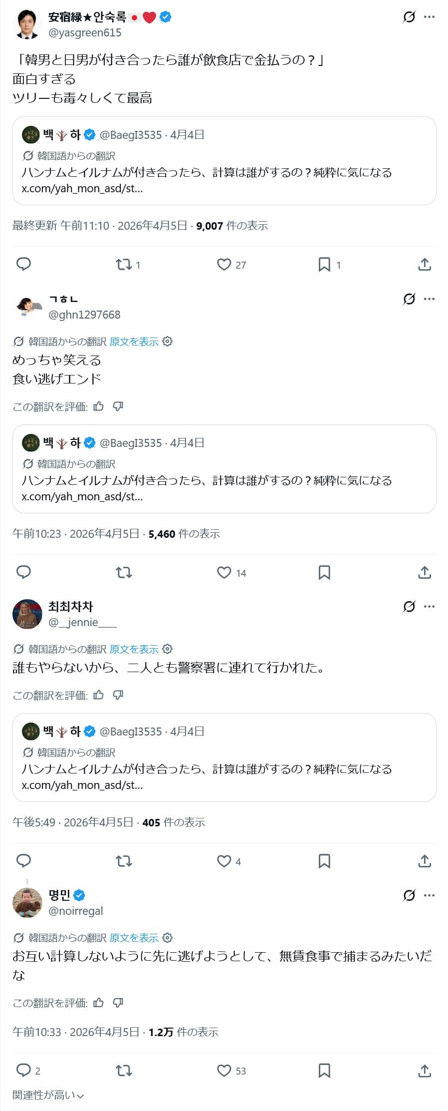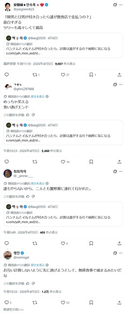 韓国女「割り勘してくる日本男と、割り勘してくる韓国男が付き合ったら、どっちが支払うの?」