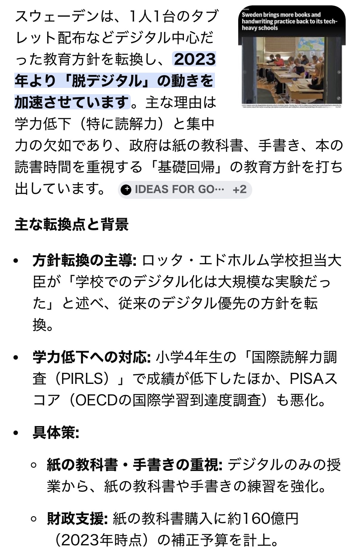 スウェーデン「学校教育をデジタル化したらみんな頭悪くなったから160億かけて廃止します・・・」