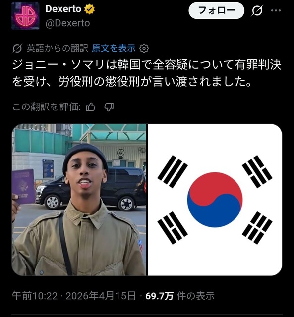 【衝撃】ジョニー・ソマリ、有罪判決。韓国で懲役刑になってしまう・・・・